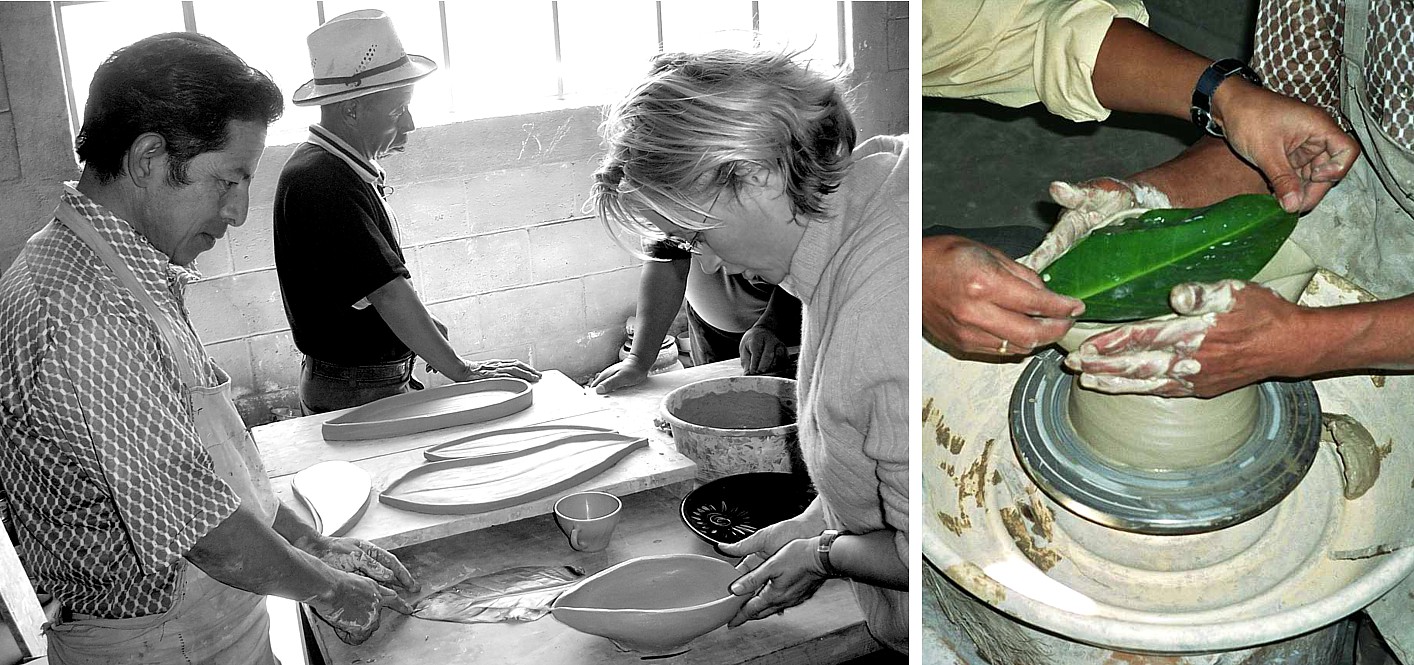 En Totonicapán, una hermosa localidad cercana a Quetzaltenango, se encuentra la cooperativa de artesanos de cerámica COPACAT, para los que hemos diseñado varias colecciones de productos inspiradas en elementos locales, como las hojas del maíz y otras plantas emblemáticas representativas de Guatemala, el país de la “eterna primavera”, o en los antiguos símbolos del calendario maya. Todas las intervenciones han sido llevadas a cabo con FUNDAP GUATEMALA.